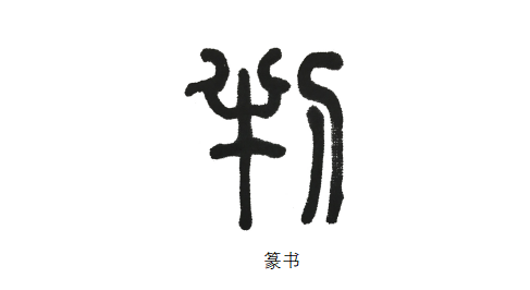 “判”字没有甲骨文和金文的写法,只有一个篆书的写法。篆书的“判”为“半”(构造很像牛头的样子),右边加一把“刀”。据考,“判”有“半”演变而来。“半”的意思是将“牛对半分开”。后在右侧加了一把“刀”,表示将牛对半分开需要使用刀具。