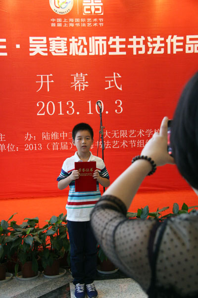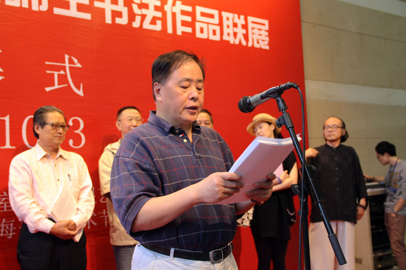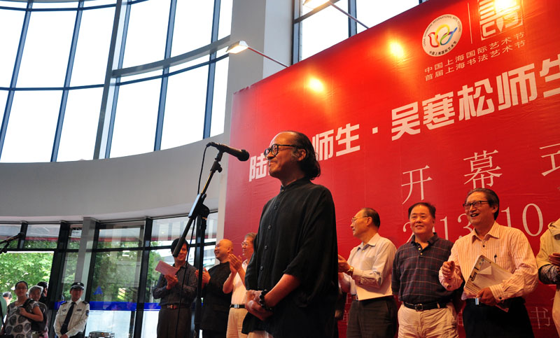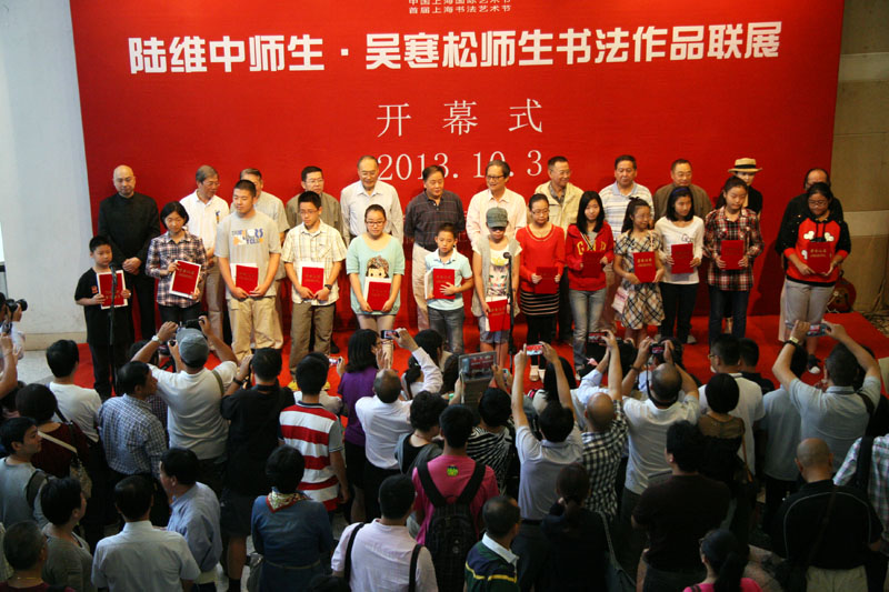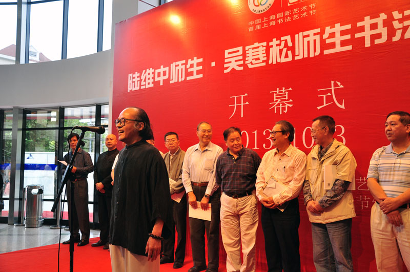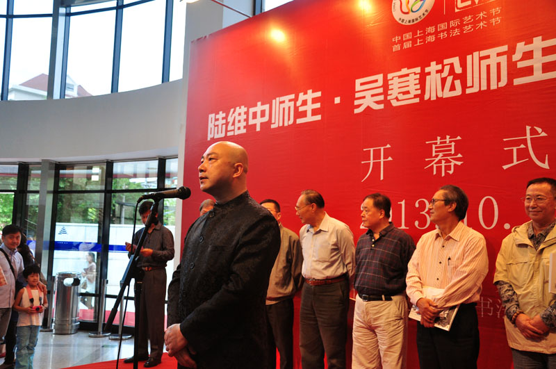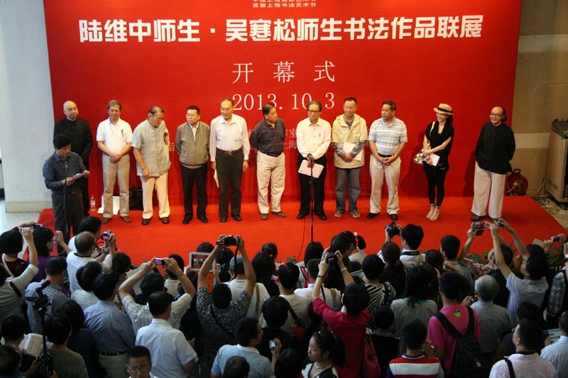 10月3日上午作为上海市首届书法艺术节项目之一的“我的书法梦——陆维中师生·吴寒松师生书法作品联展”在上海图书馆开幕。开幕式由上海市书法家协会秘书长潘善助主持,周志高主席讲话。