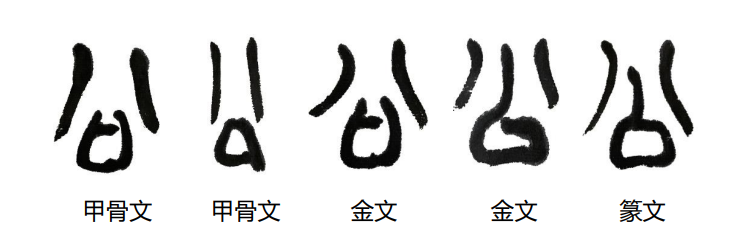 公是“共”的省略,表示集体拥有。甲骨文上部“八”,是分的本字加“口”(即“共”的省略),表示背私为公,平均分配集体所共同拥有的物品。金文承续甲骨基本字形。但是,也有的金文将“口”变成“厶”(私),表示与“私”相背。此后的篆文就延续与“私”相背的写法“公”一直延续至今。