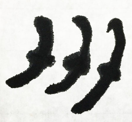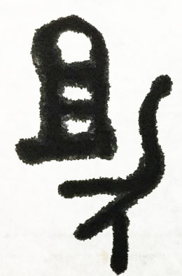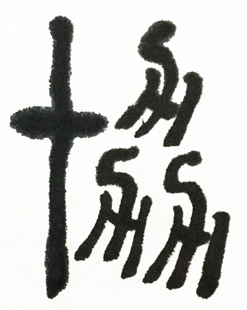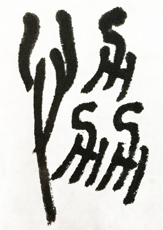 这是一个“齐心协力”的“协”字,会意。甲骨文表示有三股力同时耕田的犁具。众多的力用在一处,才称之为“协力”、“合力”。如果说甲骨文的字形还比较原始,比较抽象的话,那么篆文的三个力就更加具体更加形象了。