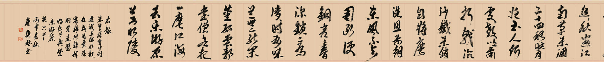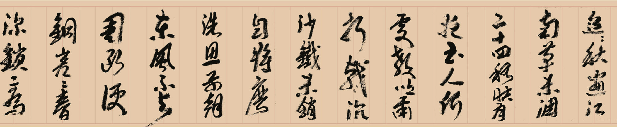 章草长卷 朱庆馀《宫中词》、《近试上张水部》 杜牧《泊秦淮》、《寄扬州韩绰判官》、《赤壁》、《将赴吴兴登乐游原》六首