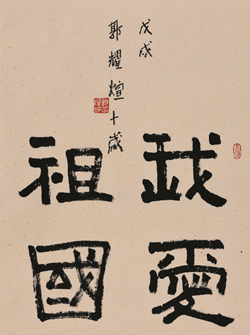 2018年 书法作品《我爱祖国》荣获澳大利亚第十四届世界和平书画展国际青少年铜奖。