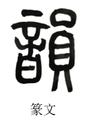 韵,无甲骨文、金文。篆文为“音”加“员”,“员”表示浑圆的鼎口。造字本义为从缶吹出的,柔和悦耳的声音。
