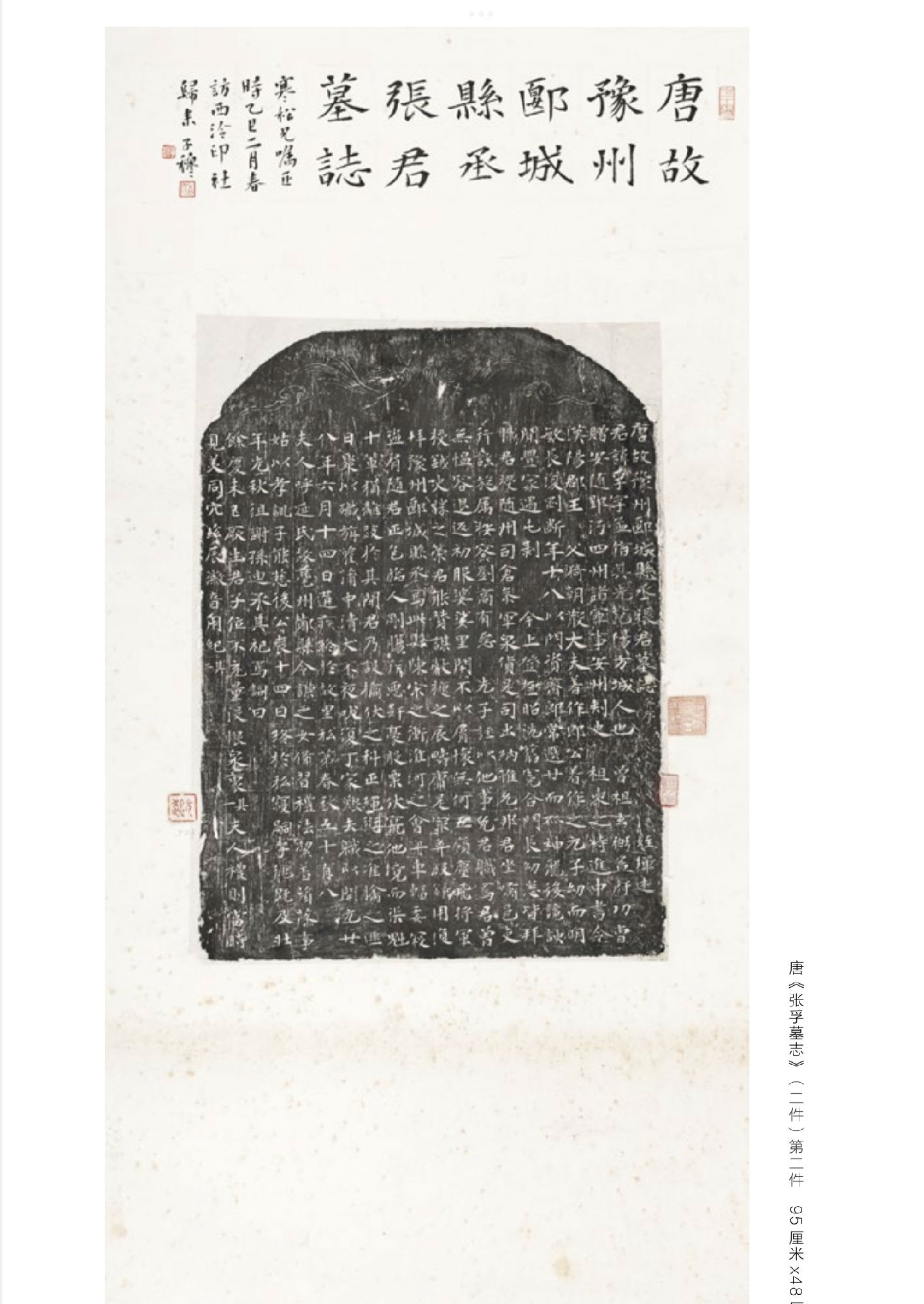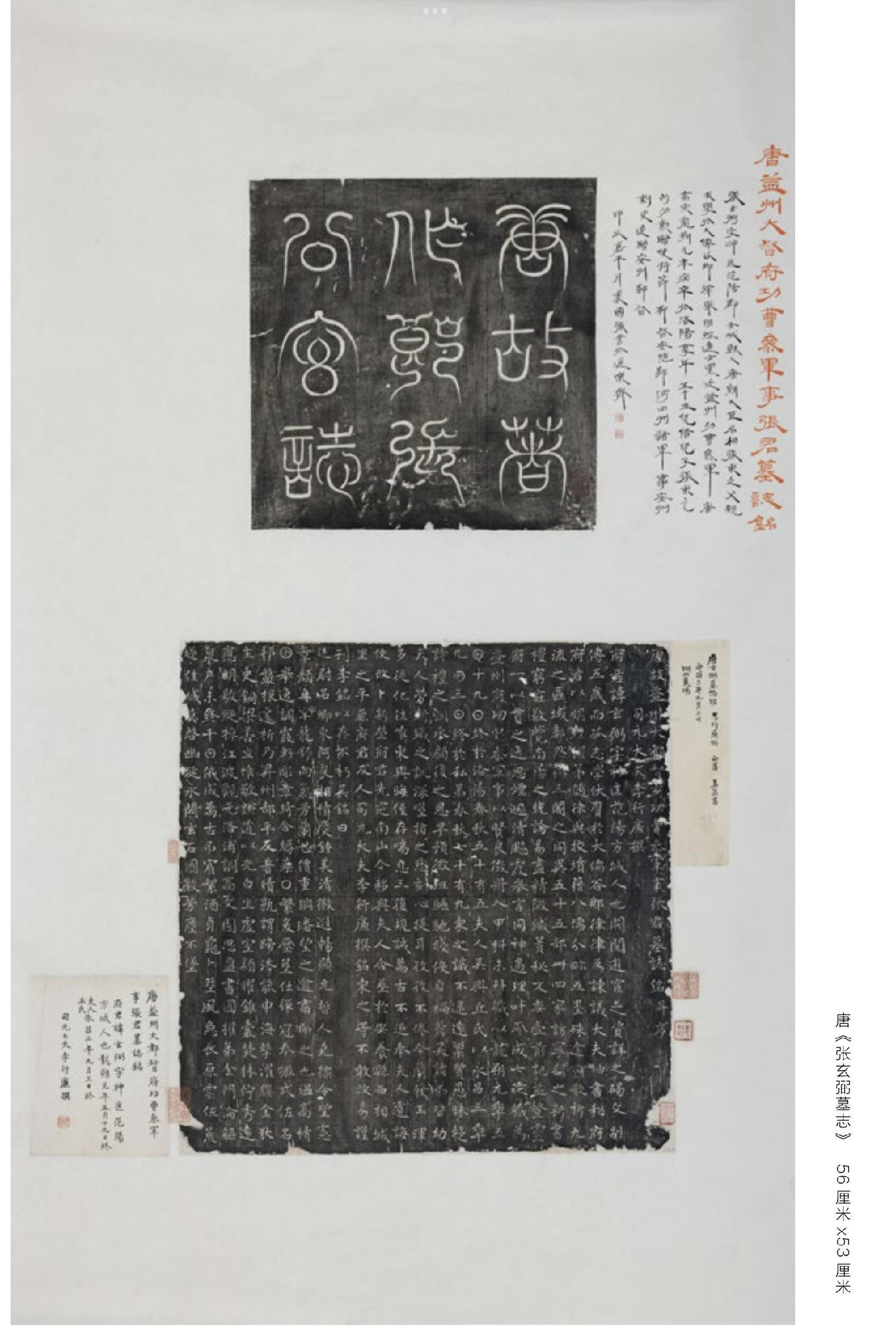 附图:这次在上海展示的《唐代襄阳张氏十志》及清代文物《唐襄阳郡张氏墓碑跋》拓本如下