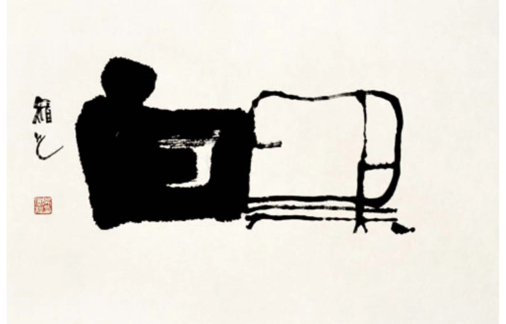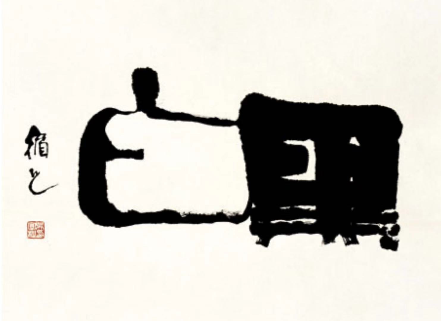 书法的线条讲究笔法、结构与气韵,绘画也借助线条勾勒形态、营造意境。这件作品以 “書畫” 两个字为母体,字的上方表示 “手握笔”,下方则先右后左各取 “書”“畫”的下部 —— 整体看,右半部分是 “书”,左半部分是 “画”。尤其是那只握着毛笔的 “手” 和这支 “笔”,仿佛在一个字中统领着两个字,很好地表达了 “书画同源” 的本义。通过字形再造,让人联想到书法的抽象线条美与绘画的形象感相融合,生动诠释了书画在艺术本质上的相通性,展现出中国传统艺术独特的综合审美特质。