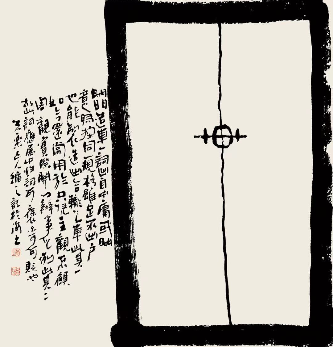我在作品的下方还题了一段跋:"人生须开三门,得道者开宇宙之门,行善者开世间之门。然欲开二门,必先开心灵之门。人为万物之主,心为人之主,故心者万物之主也。"从“人主万物”推到“心主人”,最终点明“心主万物”,把“心灵之门”的核心地位又拔高了一层。心不仅是人生的主宰,更是连接人与万物的根本。
