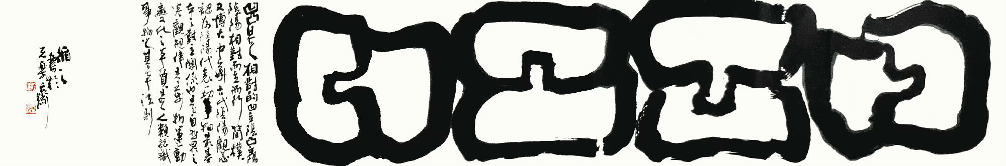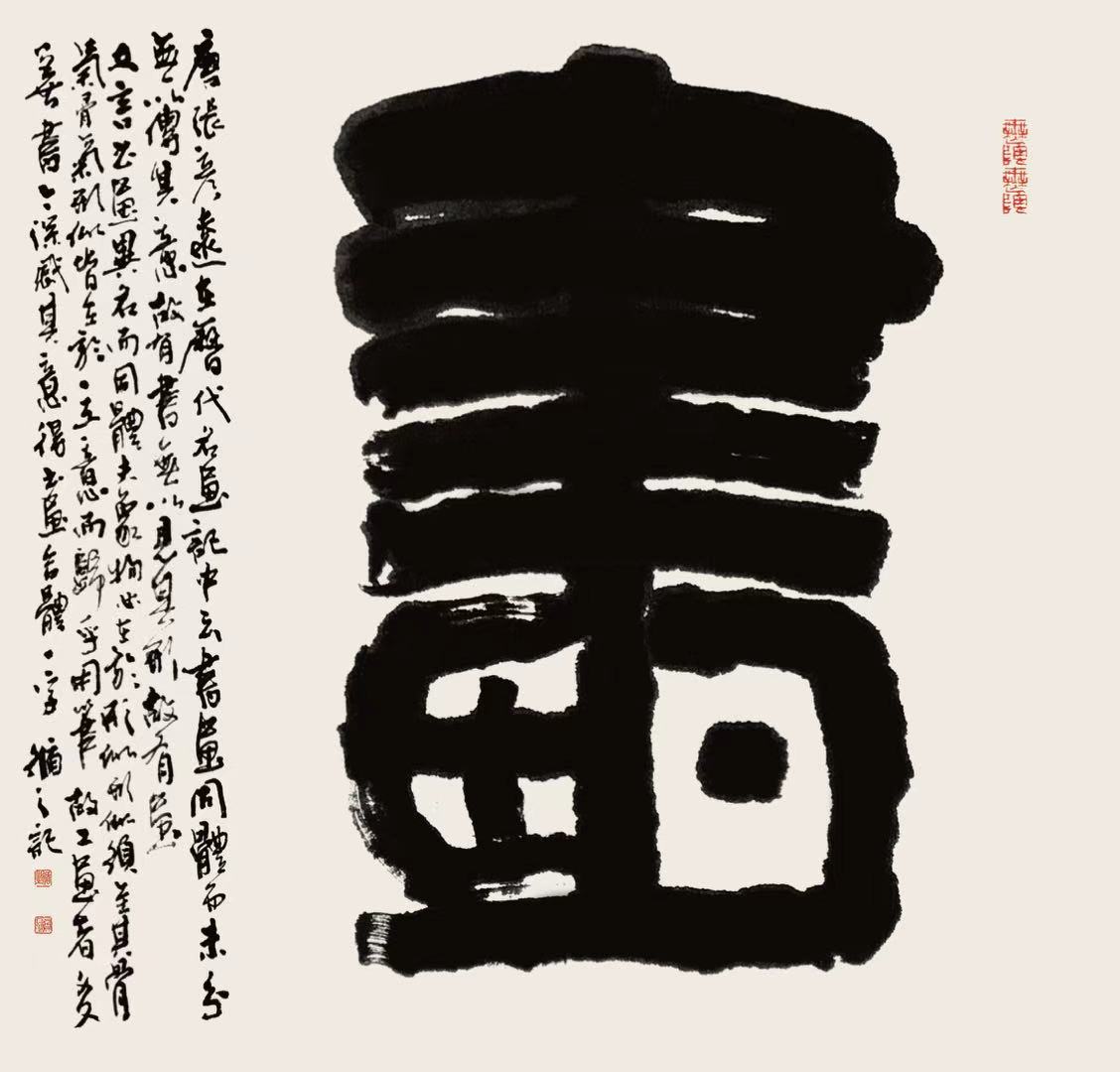 在我看来,每一位汉字书法家都是深入宝藏之中,游艺于宝藏之间,带着自身感悟生发创作。因此,我常常被一个个汉字迷住,为每一个汉字的新发现或新组合而兴奋,也为能前无古人地在这座宝藏中探索、创作而自豪。今天,我把几十年来的思考和创作分享给大家,期待获得专家的指正。