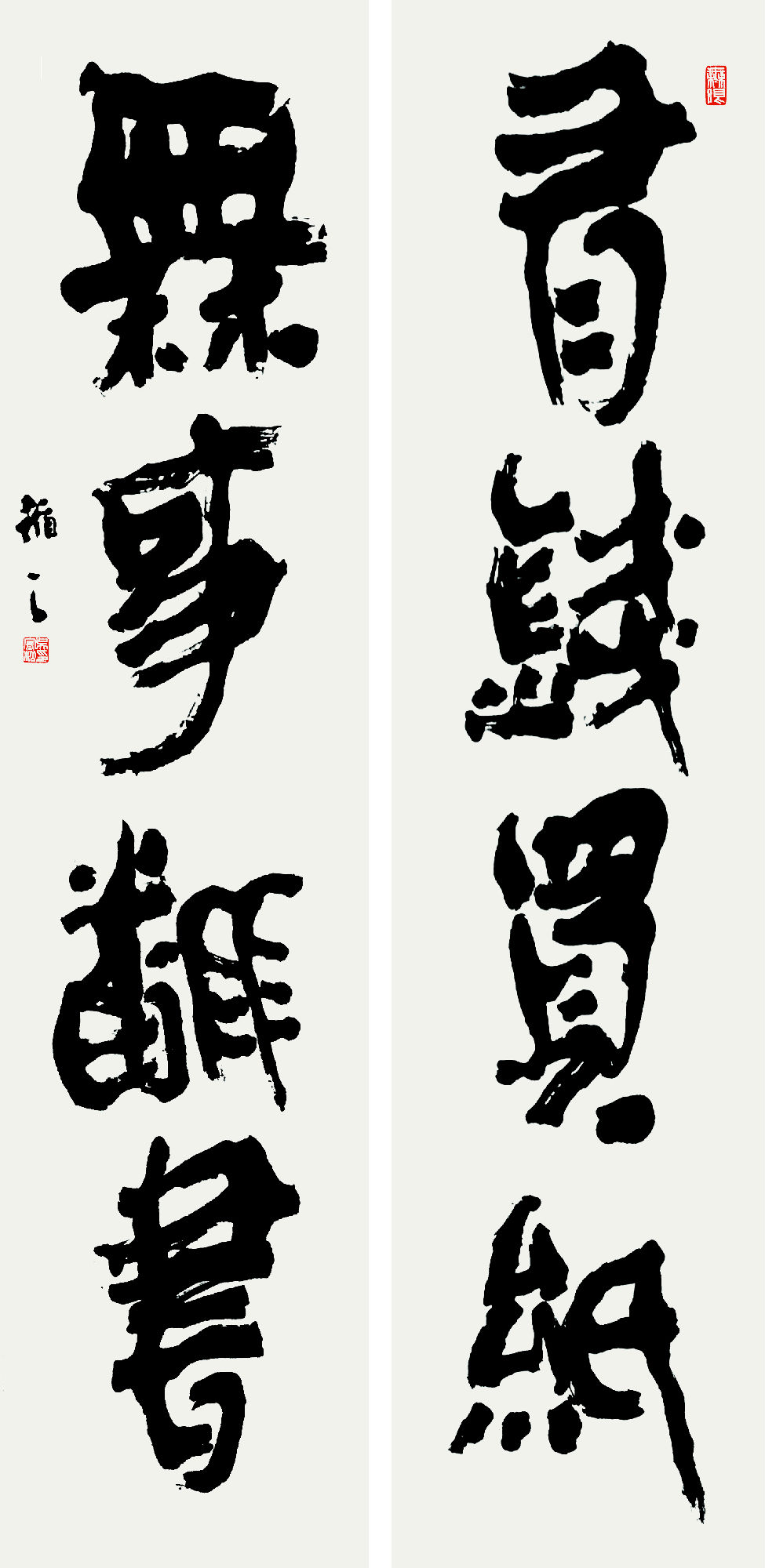 这种方法舍弃了文字的「可读性优先」原则,将字形拆解为墨块、线条的组合,以视觉冲击替代文本认读的便捷性;但锚定了「文本精神 + 笔墨情绪」的双重表达。这种看似浑然天成而实质精心布局的章法,使《老子》「道法自然」的精神内核得以完美呈现。